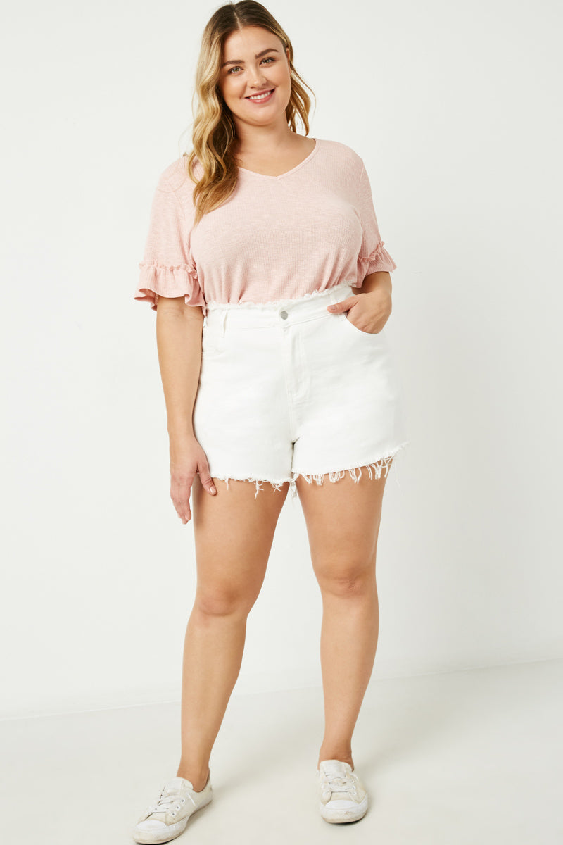 Our Distressed Frayed Detail Denim Shorts Features: