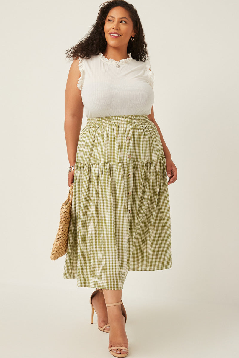 Gingham Elastic Waist Button Down Skirt