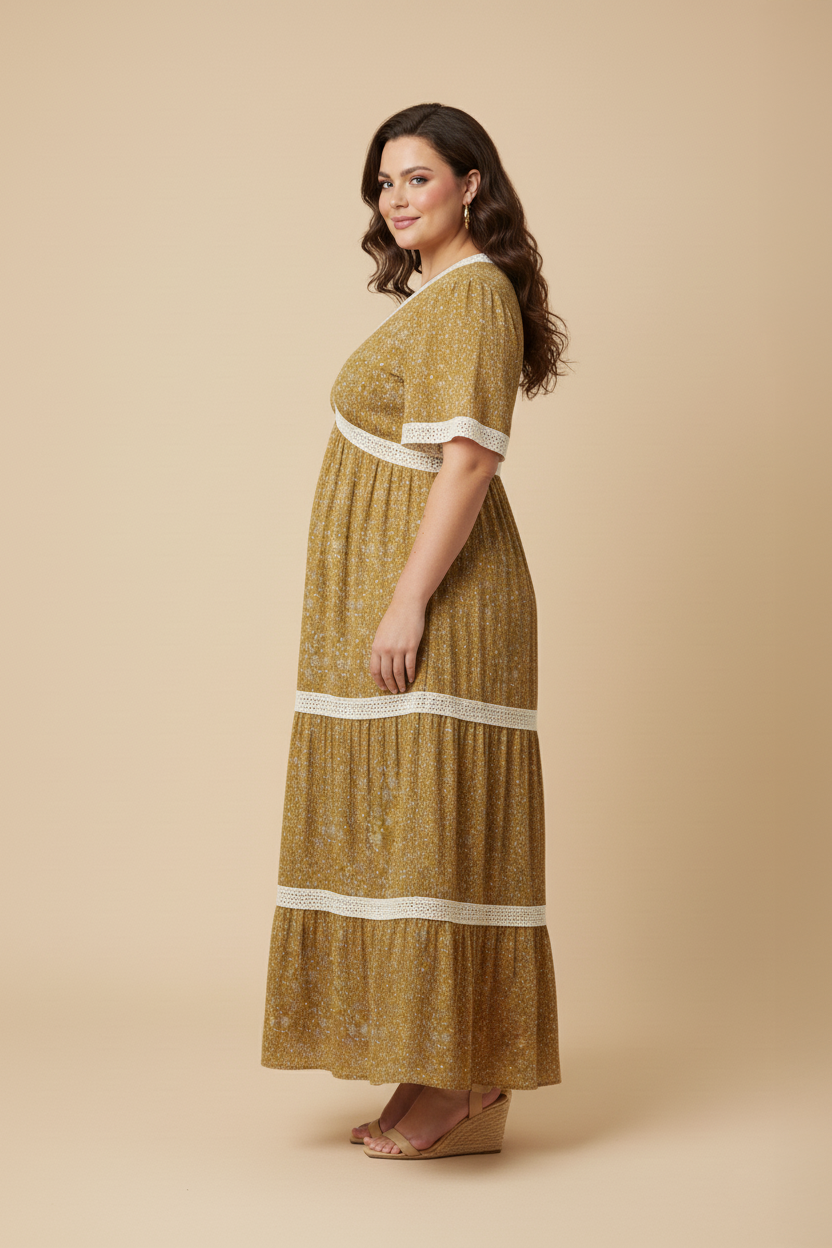 Our Crochet Lace Trimmed Textured Floral Dress Features: