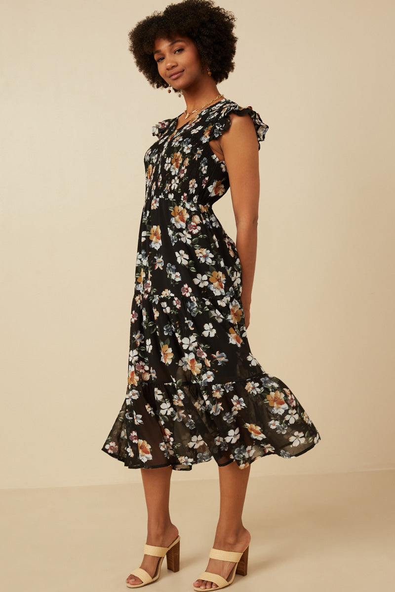 Our Smocked Romantic Floral Ruffled Tank Dress Features: