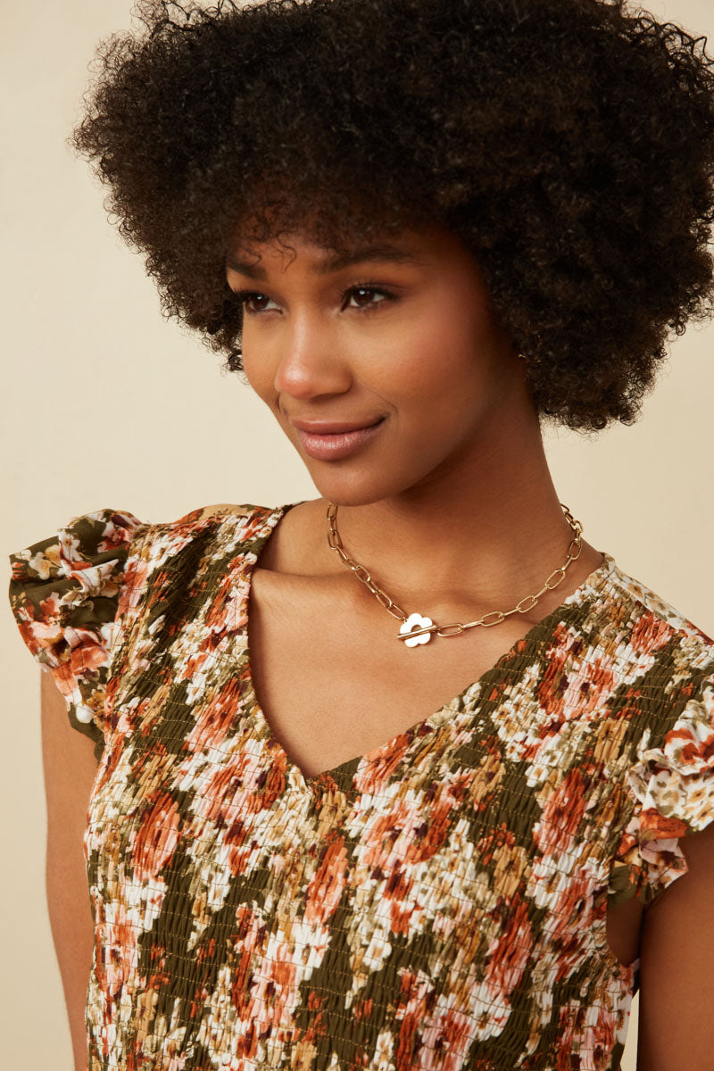 Our Floral Smocked V Neck Ruffled Tank Dress Features:
