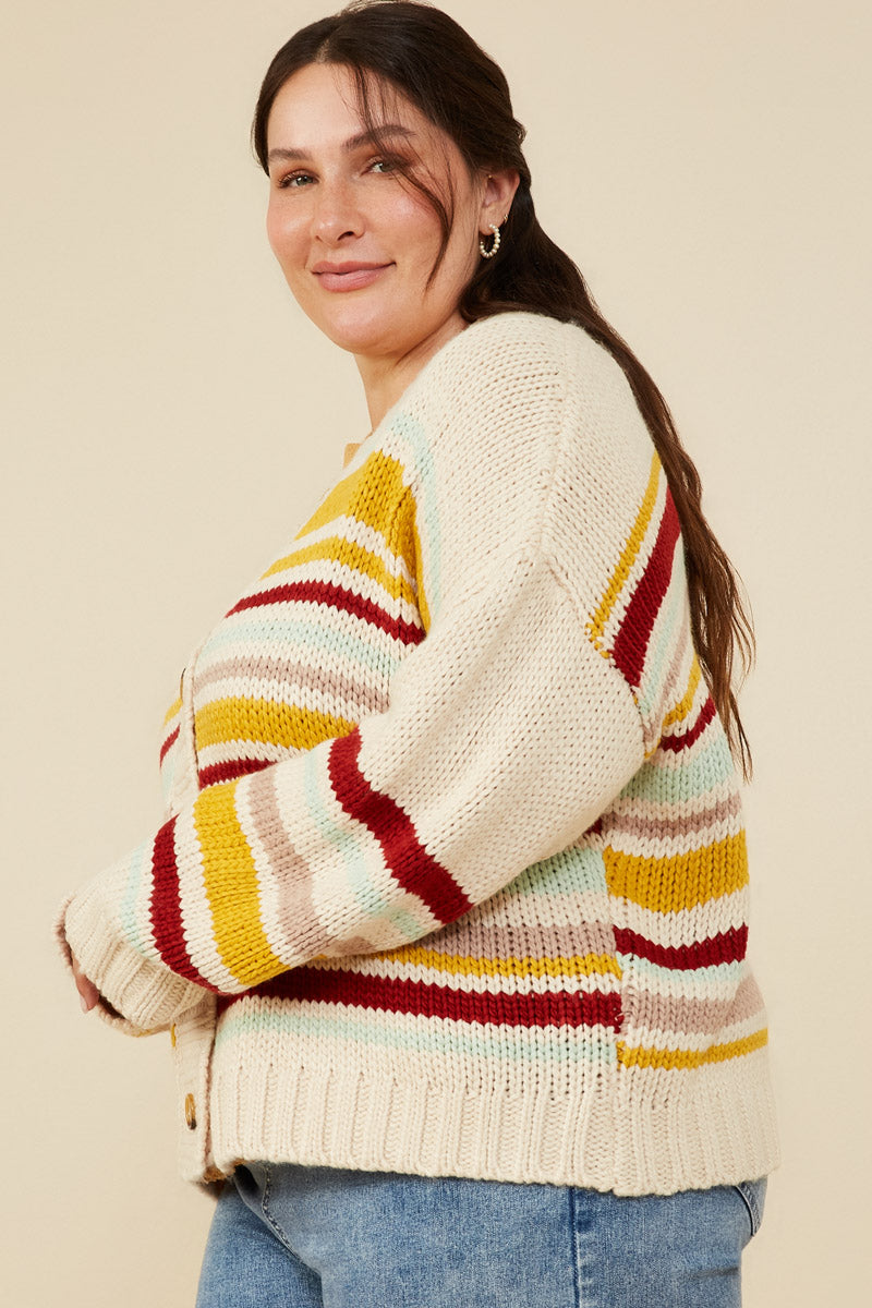 Our Multi Stripe Knit Cropped Sweater Cardigan Features: