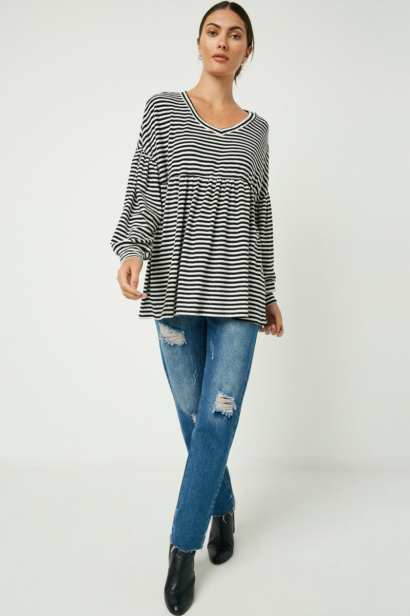 Striped Knit Puff Sleeve Peplum Top
