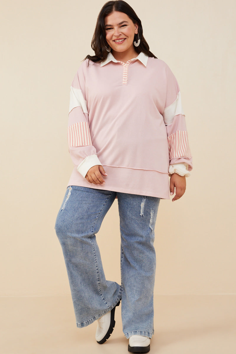Our Womens Mixed Media Print Blocked Knit Rugby Shirt Features:
