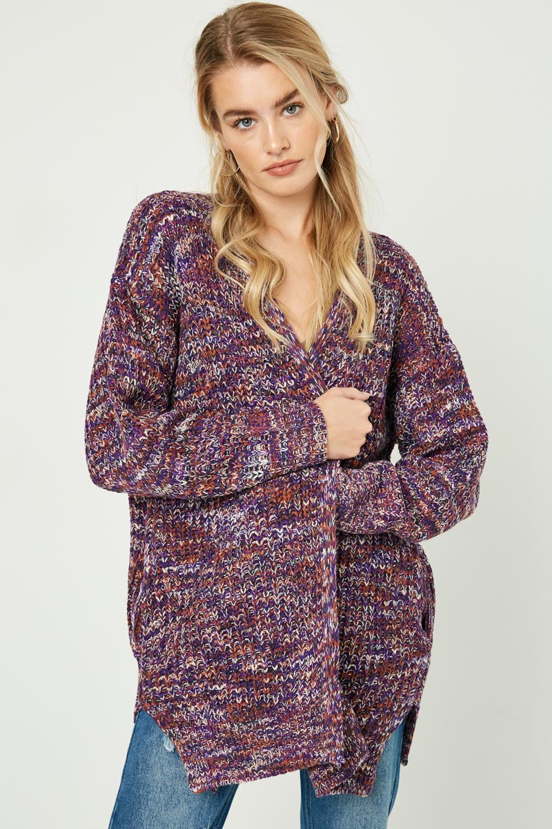Our Multi-Color Yarn Knit Sweater Cardigan Features: