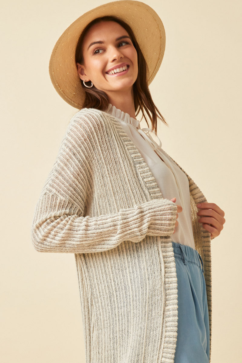 Textured Stripe Loose Knit Side Slit Duster
