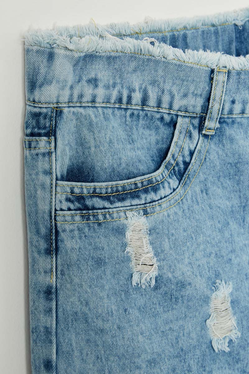 Our Distressed Acid Wash Denim Shorts Features:
