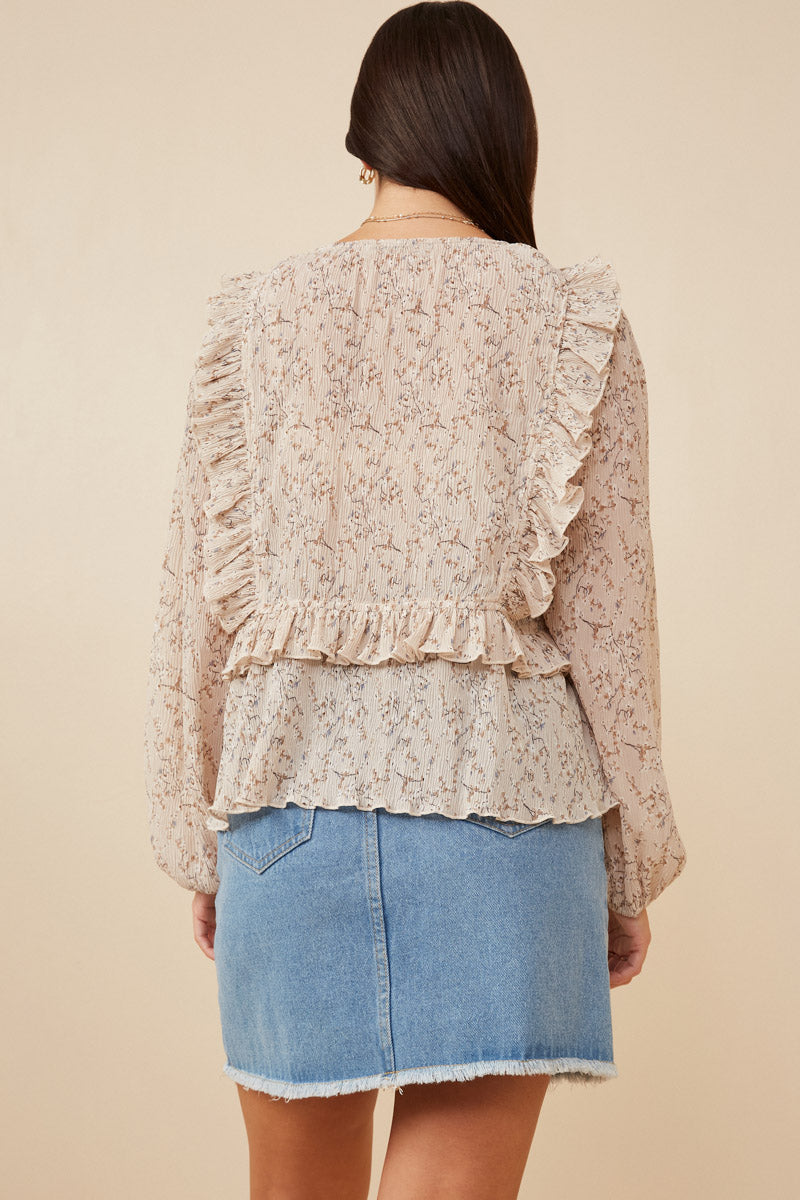 Ditsy Floral Tie Front Ruffle Detail Top