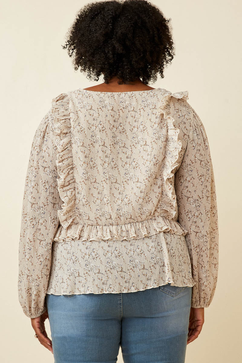 Our Ditsy Floral Tie Front Ruffle Detail Top Features: