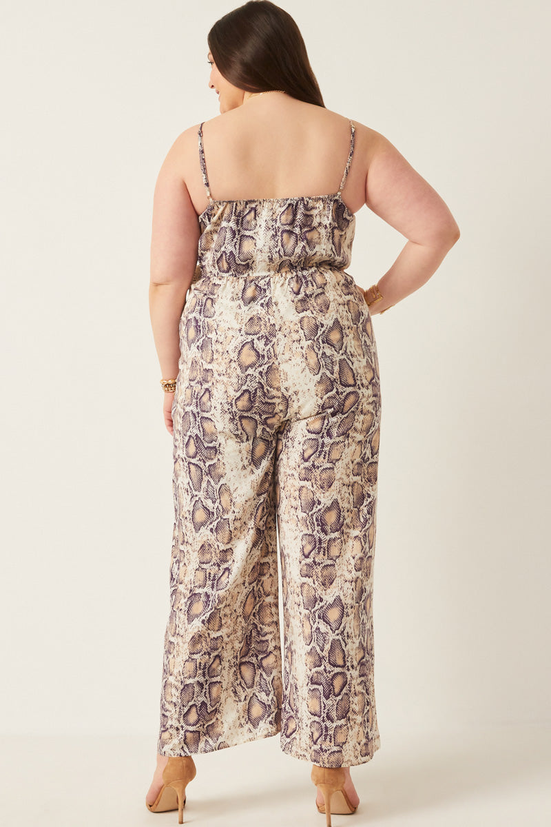 Surplice Tied Wide Leg Snake Print Jumpsuit