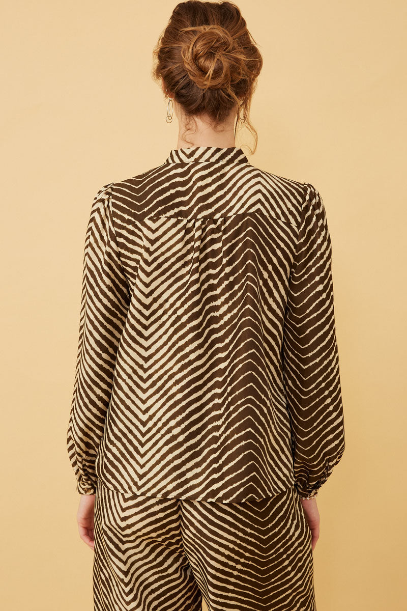 Our Animal Print Long Sleeve Tie Detail Shirt Features: