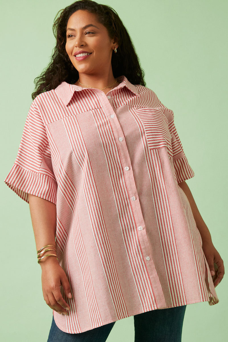 Our Contrast Stripe Pocket Oversized Short Sleeve Shirt Features: