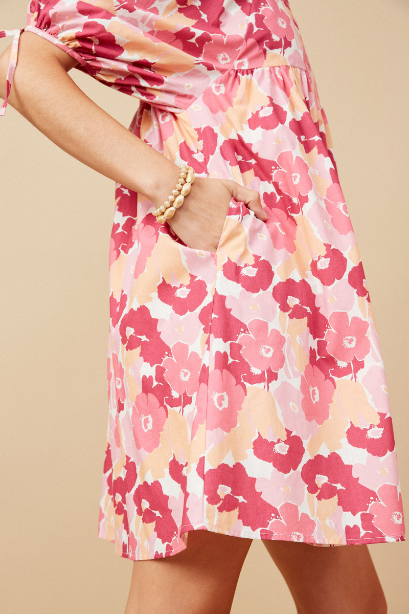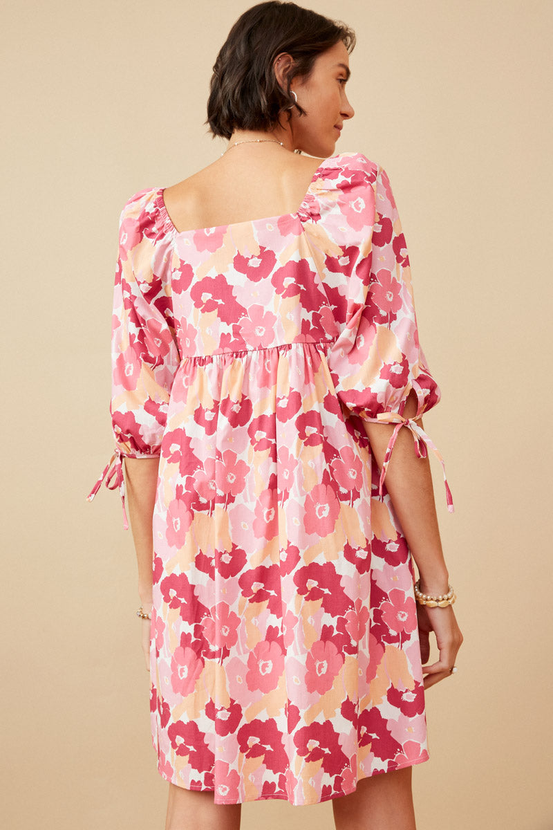 Our Large Floral Square Neck Puff Sleeve Dress Features: