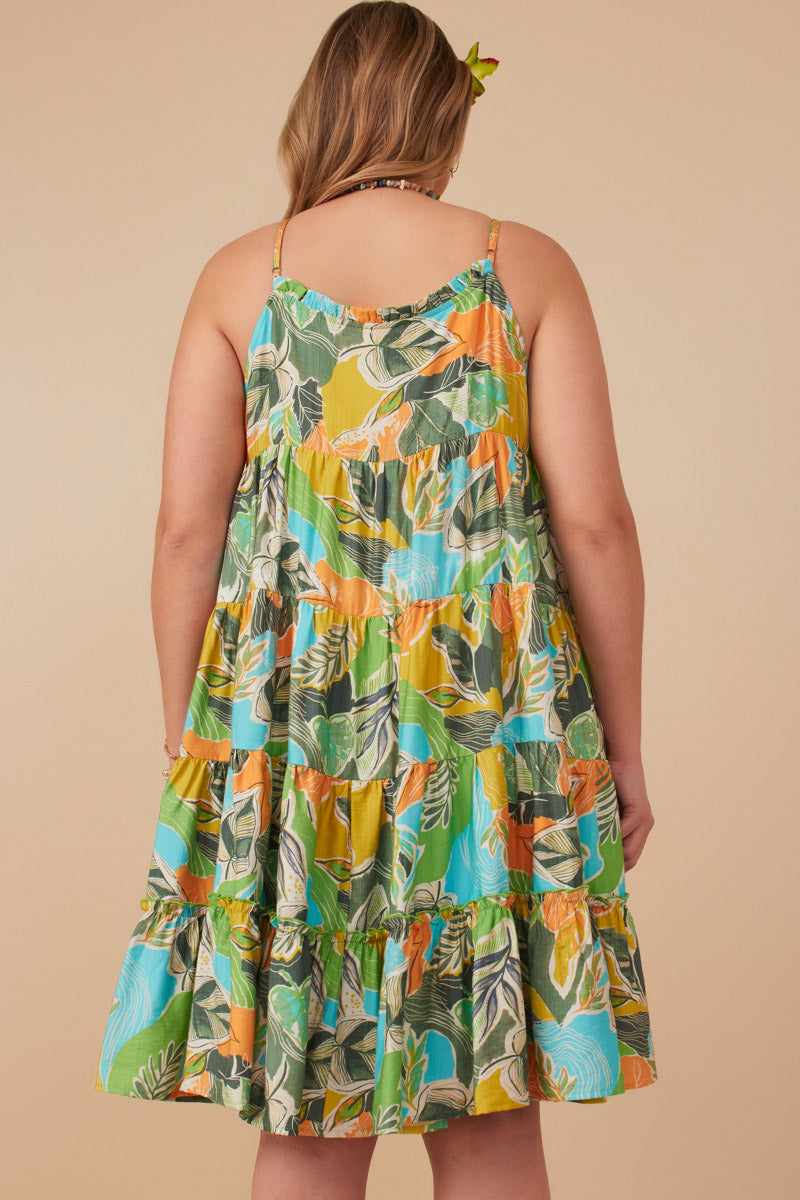 Our Textured Botanical Print Tiered Tank Dress Features: