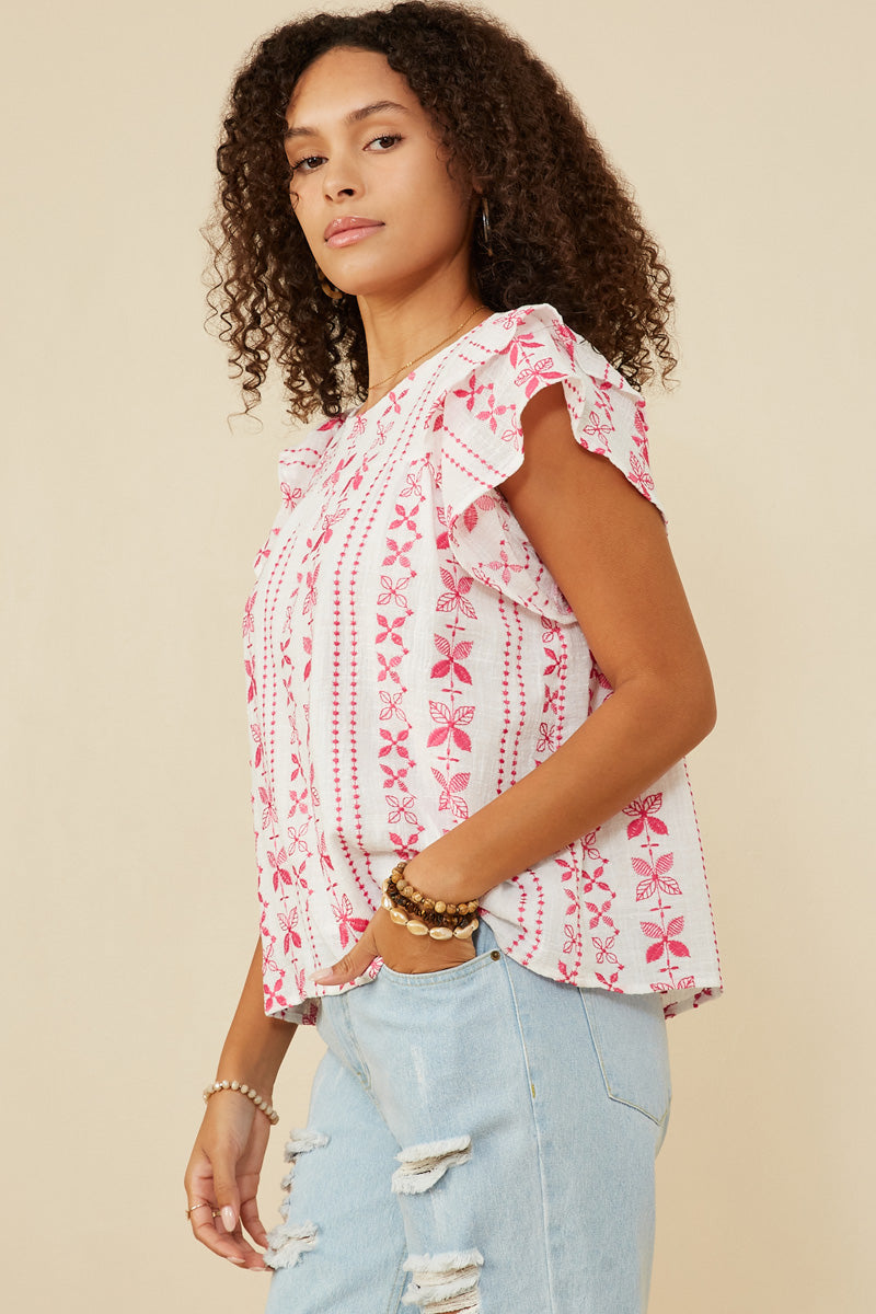Our Botanical Embroidered Layered Ruffle Top Features: