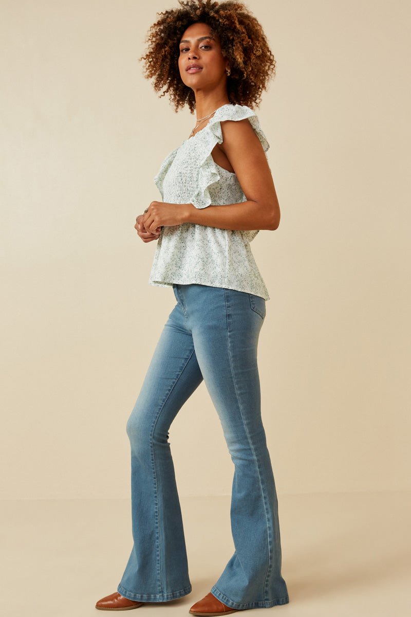 Our Ditsy Floral Smocked Ruffle Peplum Tank Features: