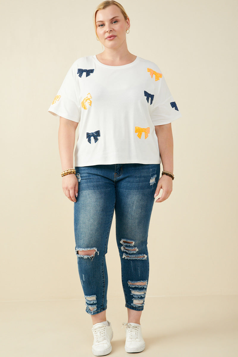 Our Gameday Team Color Sequin Bow Patched T Shirt Features: