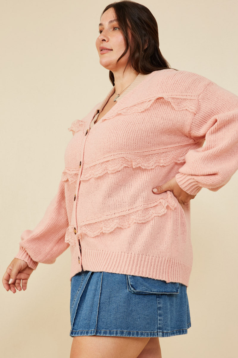Our Lace Frilled Buttoned Sweater Cardigan Features: