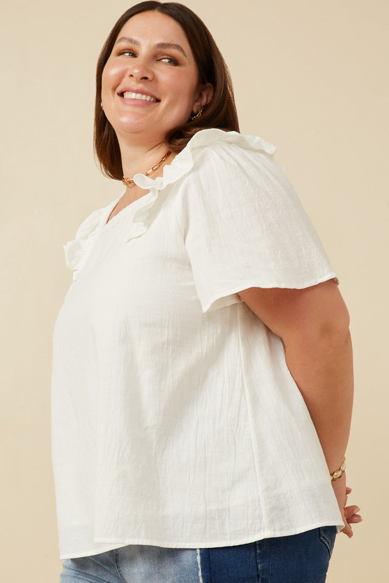 Our Lace Trimmed Wide Ruffle Detail Top Features: