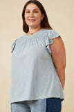 Our Smocked Yoke Ruffle Shoulder Knit Top Features: