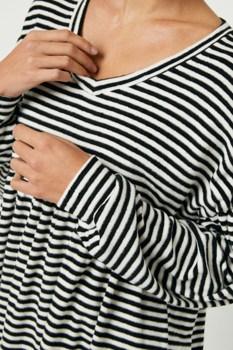 Our Striped Knit Puff Sleeve Peplum Top Features: