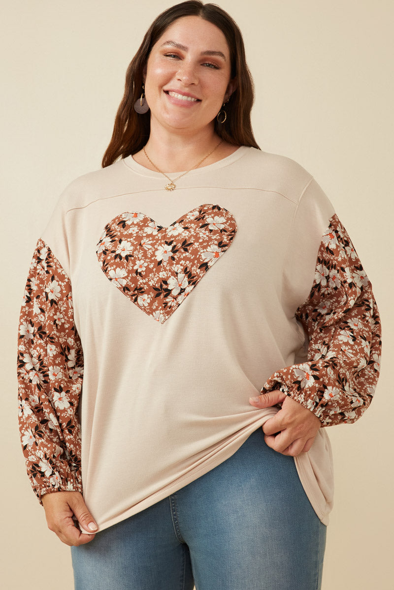 Womens Botanical Contrast Heart Patch French Terry Knit Top