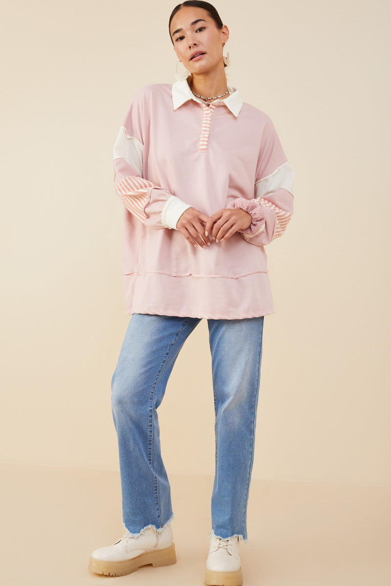 Our Womens Mixed Media Print Blocked Knit Rugby Shirt Features: